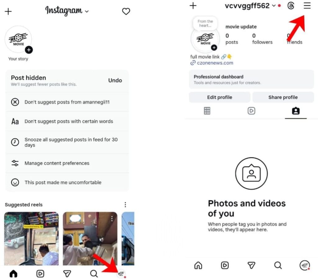 - प्रोफाइल पेज खुलने के बाद ऊपर दाईं ओर Three Lines (तीन लाइन) पर टैप करें।