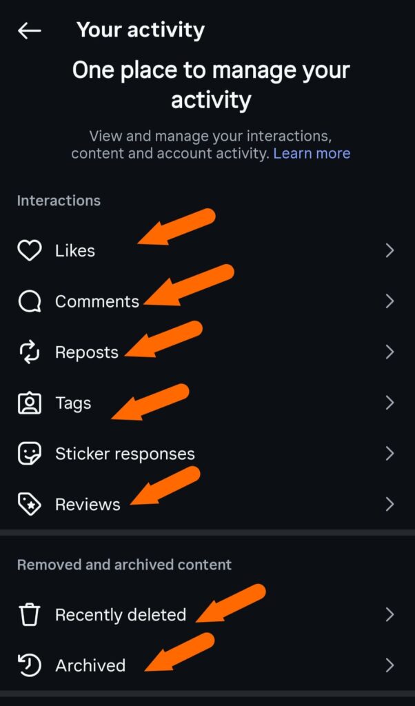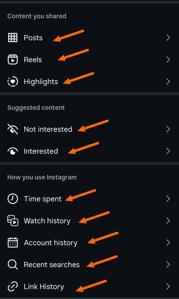 यहीं से आप अपनी इंस्टाग्राम हिस्ट्री का हर हिस्सा चेक कर सकते हैं।