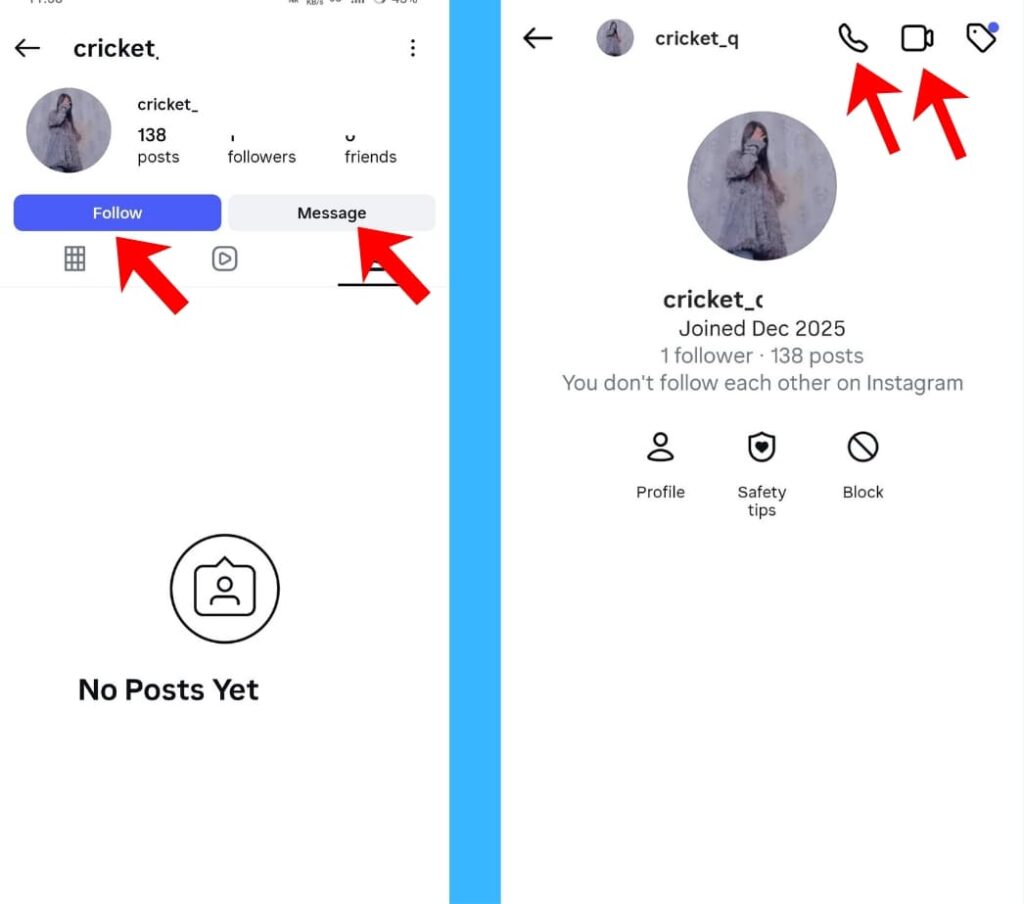 अगर आप अपने फॉलोअर्स या जिन्हें आप फॉलो करते हैं, उनमें से किसी को कॉल करना चाहते हैं, तो यह तरीका अपनाएं:
